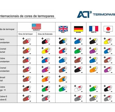 Os cabos fornecidos pela ACI3-3 Termopares seguem as ligas compatíveis com cada tipo de termopar: